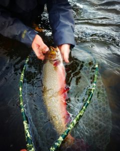 In addition, the Freestone didn’t disappoint this past week for anglers targeting brook trout on fly. Brookies aren’t shy about taking dry flies now and will smash Moorish mice, hoppers and ants! Angler Brian Porter while on assignment for The Drake Magazine didn’t know the sheer size of the brook trout photographed below (caught and released on the freestone river) until she was in the net. This giant specimen tapped out at 23.5 inches and ate a yellow articulated zoo cougar.