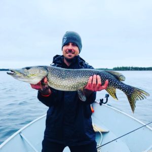 Things at the lodge are up and running with our first guests in-house and picking up right where our staff left off! Water temperatures are hovering in the low-mid 50’s (54 degree average). This warming trend was starting to turn the fish from negative to positive. Until this past Saturday when a cold front moved in. Not to fear, the fishing is still fantastic if you adopt slow-presentation techniques. Ferguson Bay, Wottom Bay and the outlets of the Freestone and Troutfly rivers are hot spots despite the cold weather. (as is the ever-awesome Honey Hole.) Find walleye in 5-7 feet of water and pike still relating to shallow bays. Jackall Rhythm wave 4.8 and the 4 inch X-zone Swammer are the go-to lures this week. Walleye are still eating heartily and have yet to move deep. Big fish of the week came from the Hynds Family with Thomas Sr. Mastering a 40.5 inch pike and Tommy Hynds ever so close to Master Angler with a 39.5 northern.